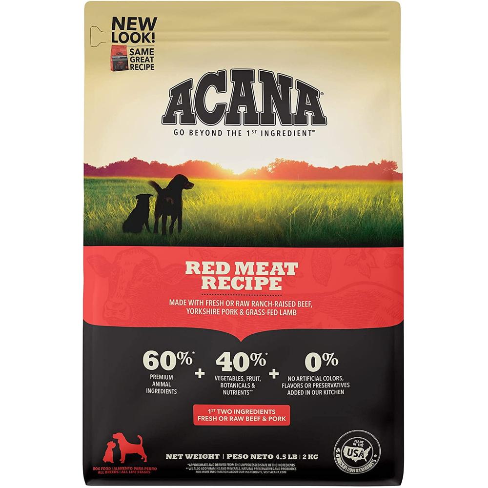 ACANA Red Meat Recipe is formulated to meet the nutritional levels established by the AAFCO Dog Food Nutrient Pro?les for All Life Stages, including growth of large size dogs (70 lb or more as an adult).