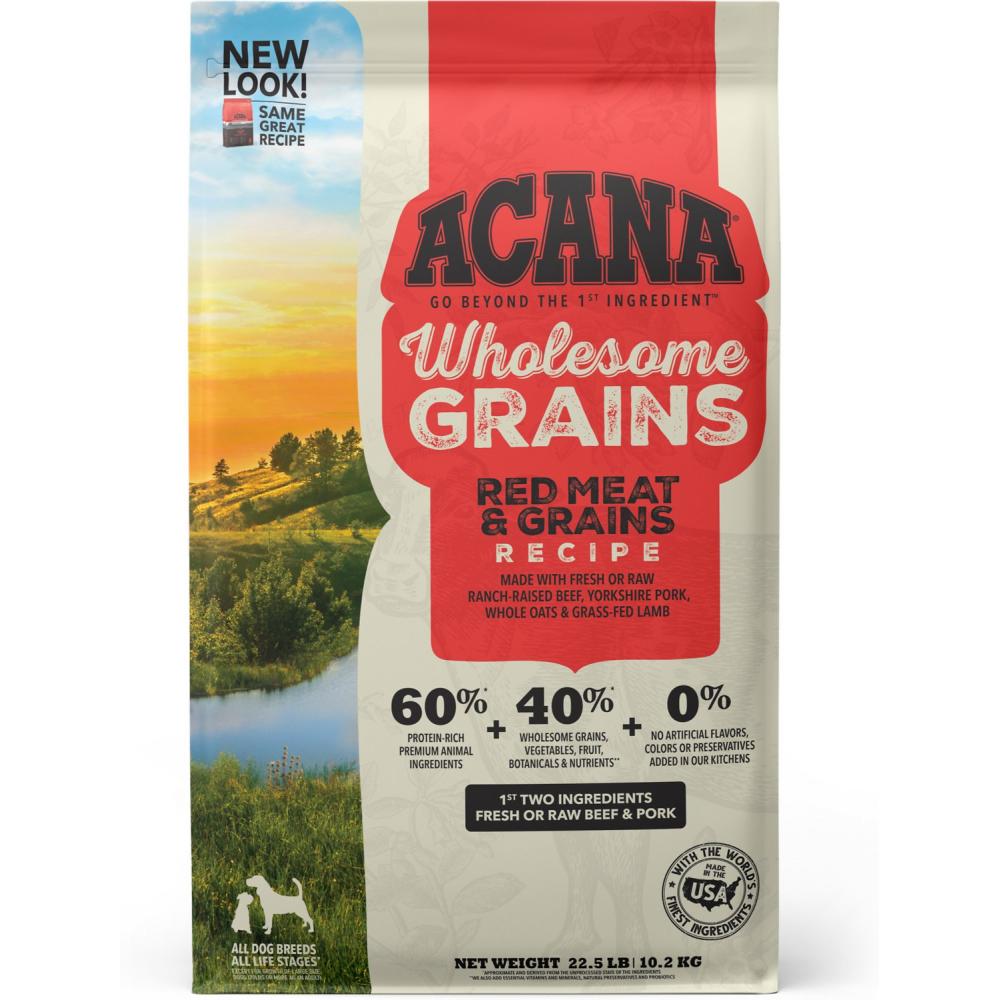 Acana Red Meat Recipe with Wholesome Grains is formulated to meet the nutritional levels established by the AAFCO Dog Food Nutrient Profiles for All Life Stages – except for the growth of large breed dogs (70lbs or more as an adult)