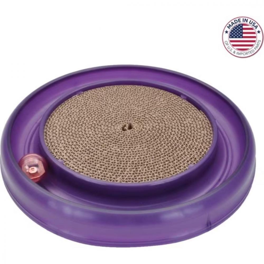 Spark playfulness in your cat with the Turbo® Star Chaser® with Twinkle Ball™ Cat Toy! Cats love the variety of play options provided by this toy. With its racetrack design, motion-activated spinning ball and scratchpad, your cat gets several interactive toys in one. The toy keeps cats active and the light-up ball offers added visual stimulation. The textured scratchpad satisfies the urge to scratch, preventing cats from tearing and damaging furniture. Replacement scratchpads are available to keep the surface fresh for long-lasting use. Sprinkle catnip on the toy or add a feather-tail toy to the center to give playtime an added boost!