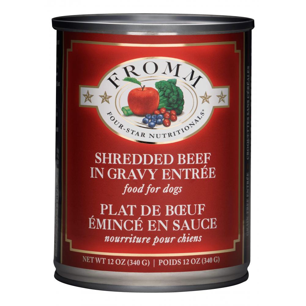 Fromm Four-Star Nutritionals® Shredded Beef in Gravy Entrée Food for Dogs is formulated to meet the nutritional levels established by the AAFCO Dog Food Nutrient Profiles for All Life Stages, including growth of large size dogs (70 lbs. or more as an adult).