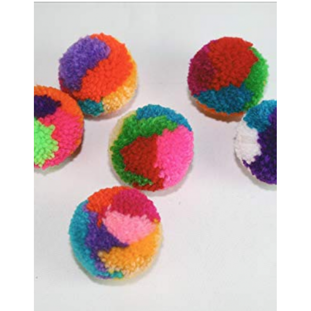 Pom Pom cat balls are hand-crafted from polyester fiber. Individually hand-crafted, they are colorful, durable, soft, and great for hours of play!