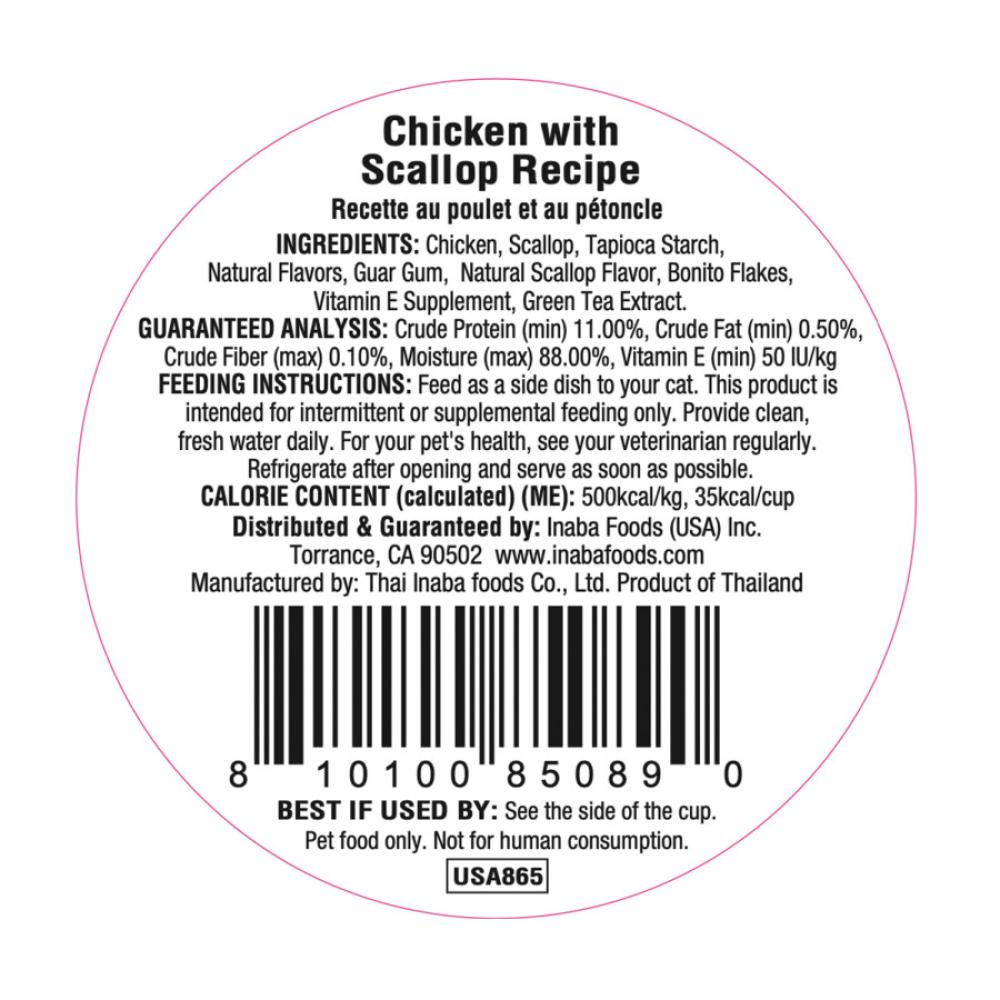 Ingredients: Chicken, Scallop, Tapioca Starch, Natural Flavors, Guar Gum, Scallop Extract, Bonito Flakes, Vitamin E Supplement, Green Tea Extract