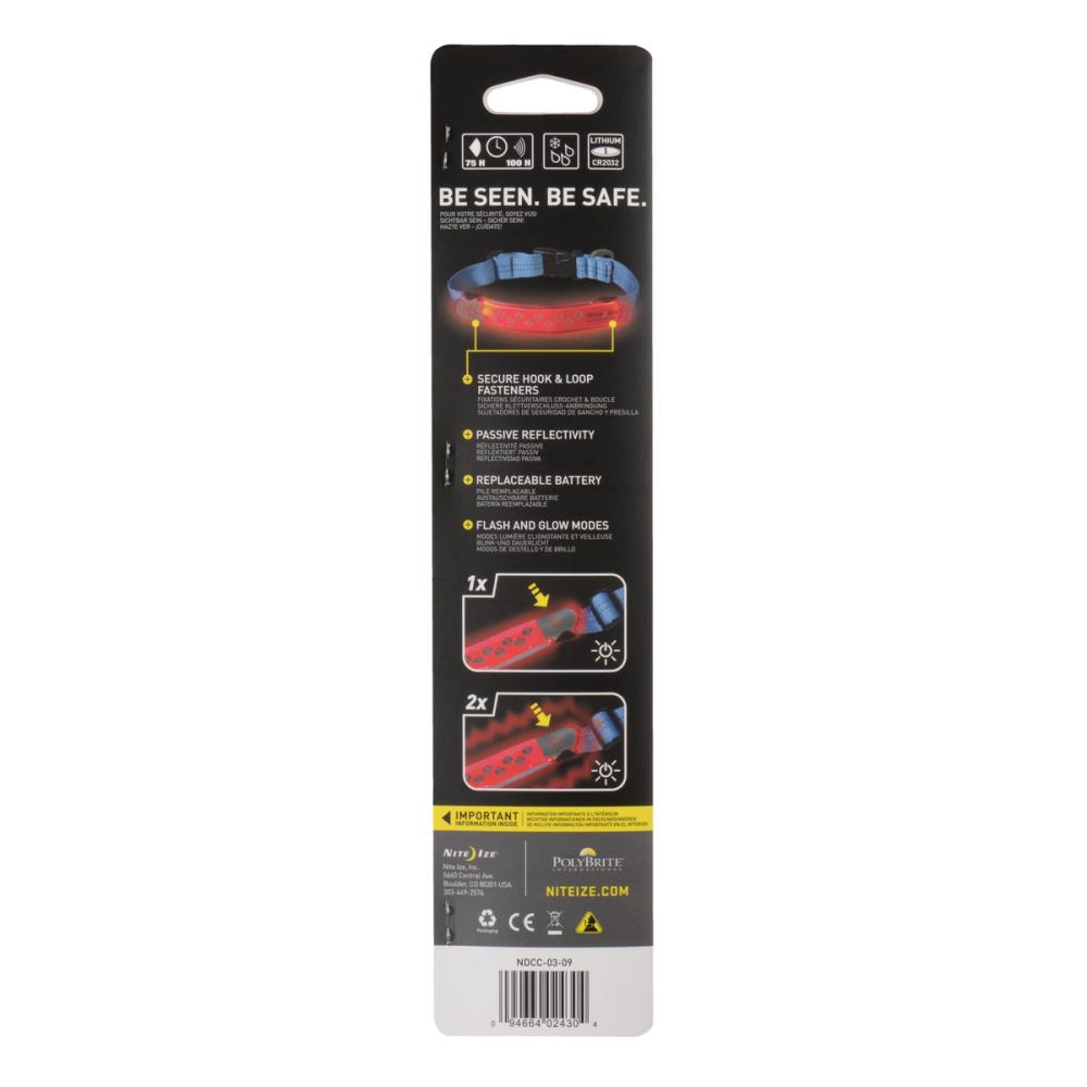 The Nite Ize Nite Dawg LED collar cover is the answer to every night-loving dog owner's problem: losing sight of their best buddy after sundown. Durable, weather resistant and lightweight, this super low-profile (not much thicker than a bandage) flexible LED illuminated strip fits comfortably over almost any dog's collar and closes securely with two micro hook-and-loop tabs. Its bright, light-transmitting polymer core is illuminated by a super efficient red LED bulb with two mode settings - flash and steady glow, and is housed in a high-quality thermal plastic urethane exterior. Visible up to 1000 feet in the dark, and powered by a long-life, easily replaceable battery (included), the Night Dawg LED Collar Cover is available in two colors, with decorative paw prints that provide passive reflectivity for visibility even when not illuminated.