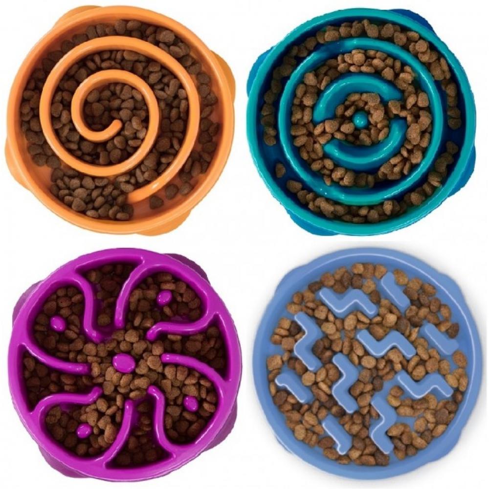 • Common issues that arise in fast-eating dogs include bloating, regurgitation, and canine obesity. Our Fun Feeder Slo Bowls both challenge and engage your dog during mealtime while helping reduce overeating behavior.